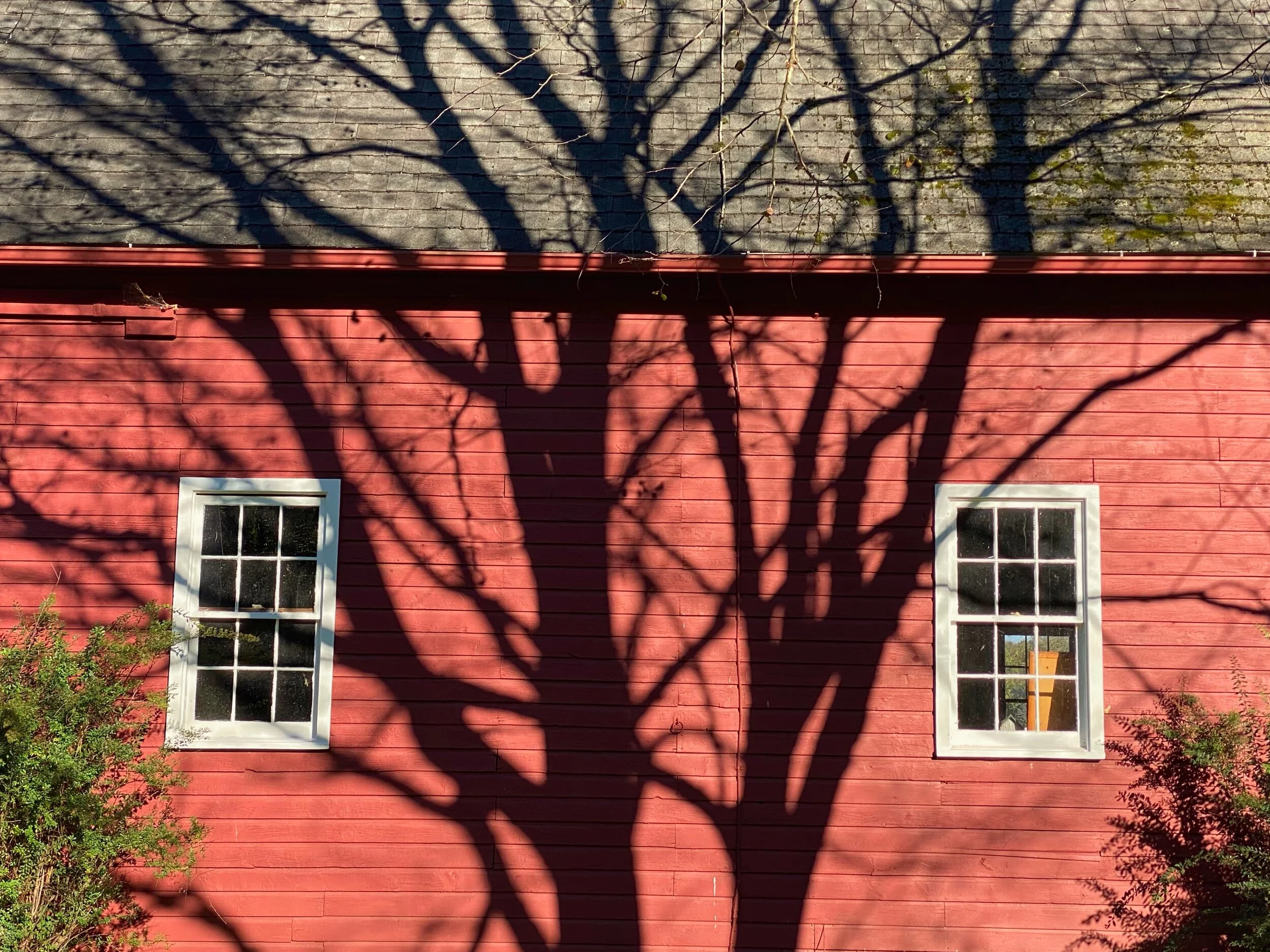 Back on my bike as the sun was getting lower in the sky, I relished biking by New England’s classical and gorgeous dark red barns. Here, on Seekonk Crossroad with dark tree shadows on the building catching my eye, I braked, turned around and clicked once again.