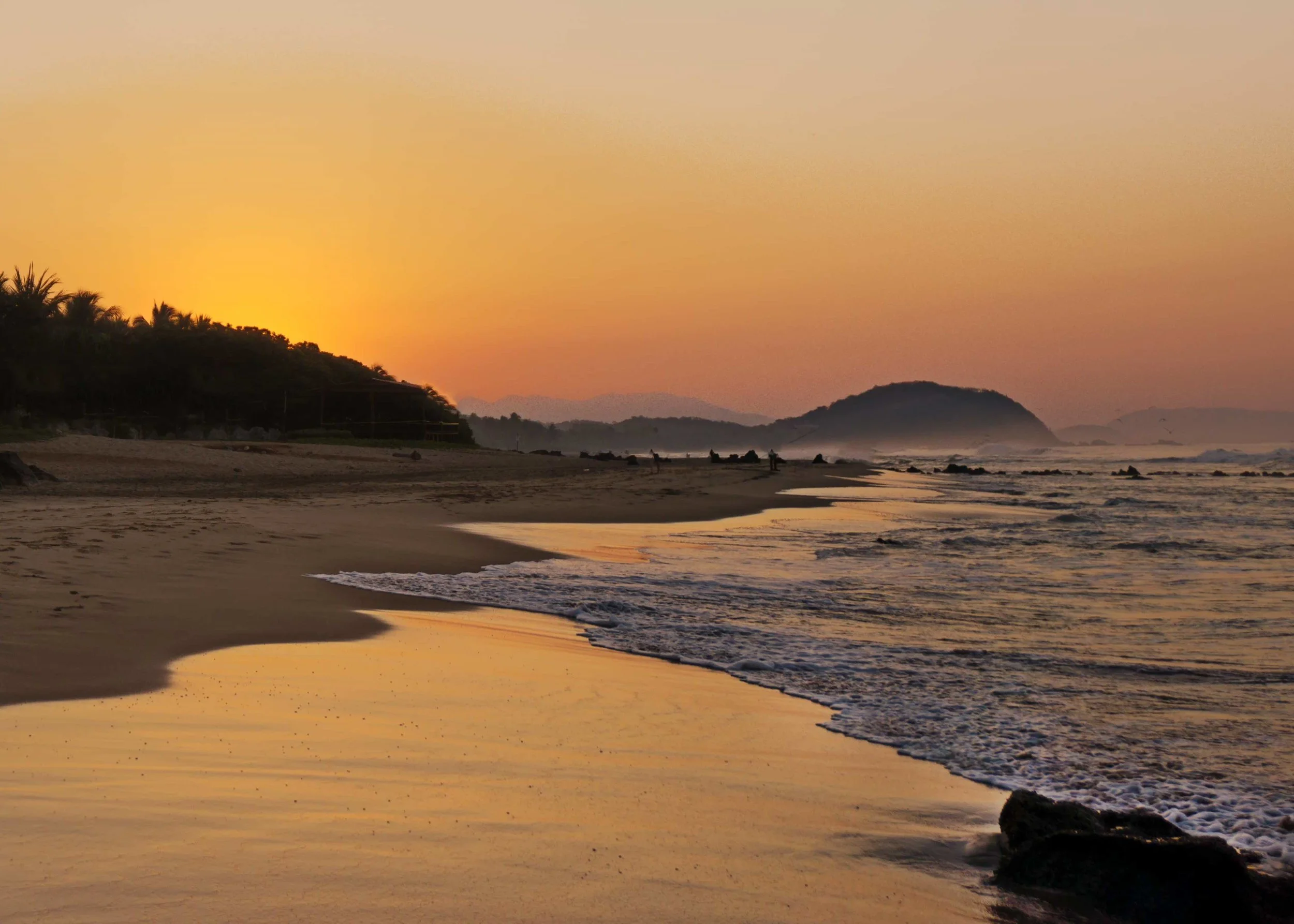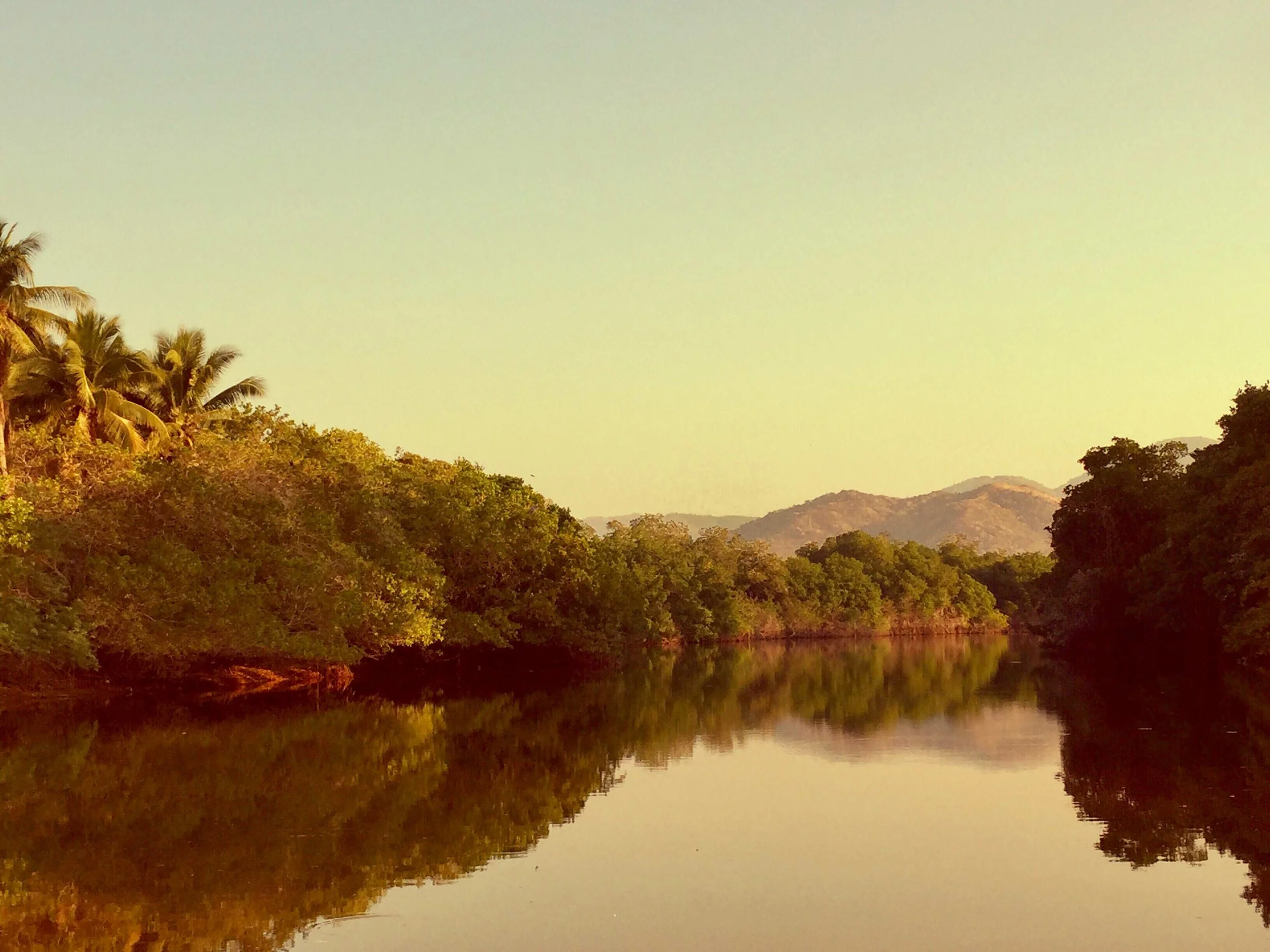 The tranquil, sensuous mirror-like quality of water on a lagoon just off a beach at dawn...
