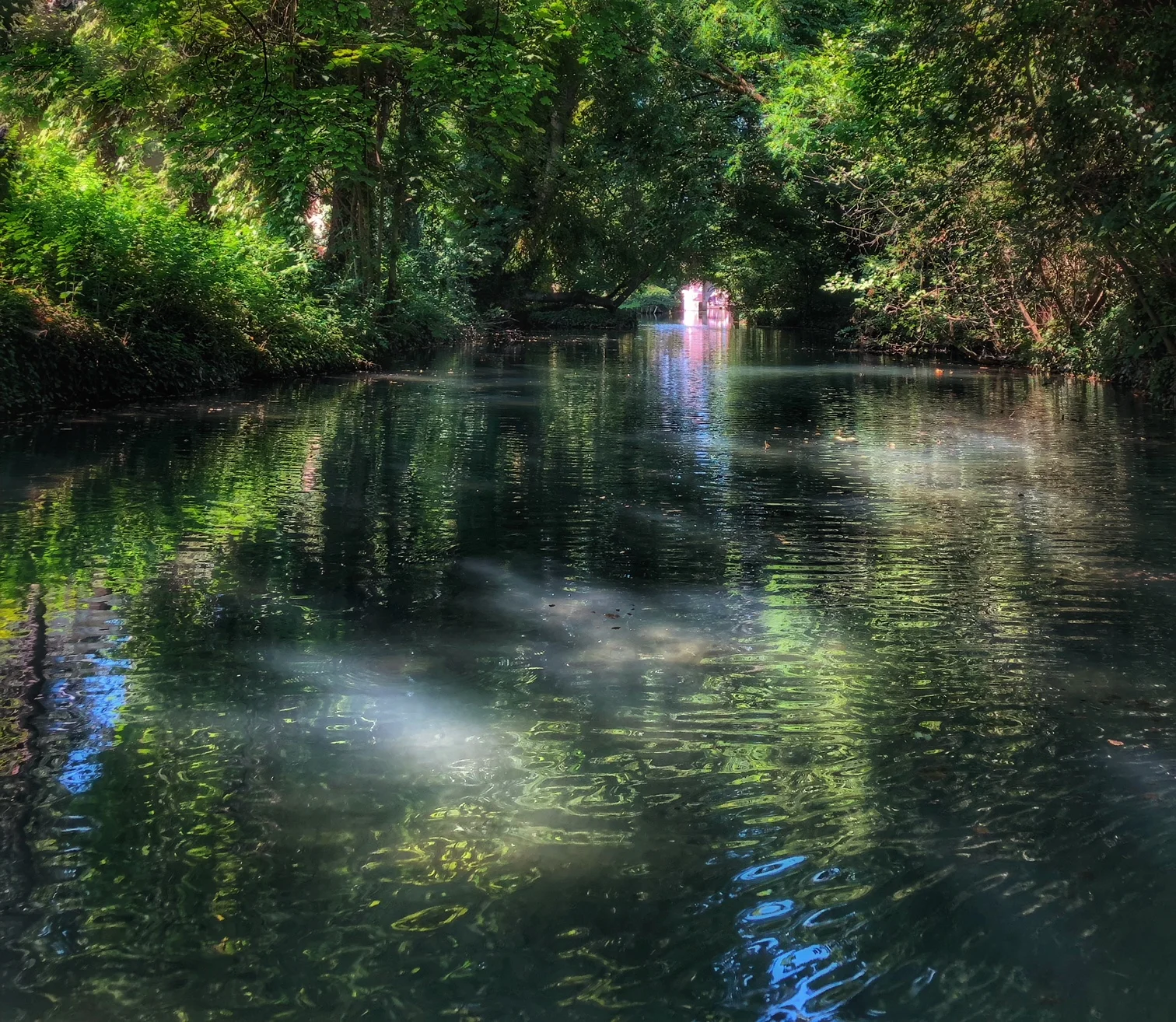 Before we turned around on the boat a more recognizable, less abstract type of environment awaited. This is one we well know when we see reflections of trees and other plants.