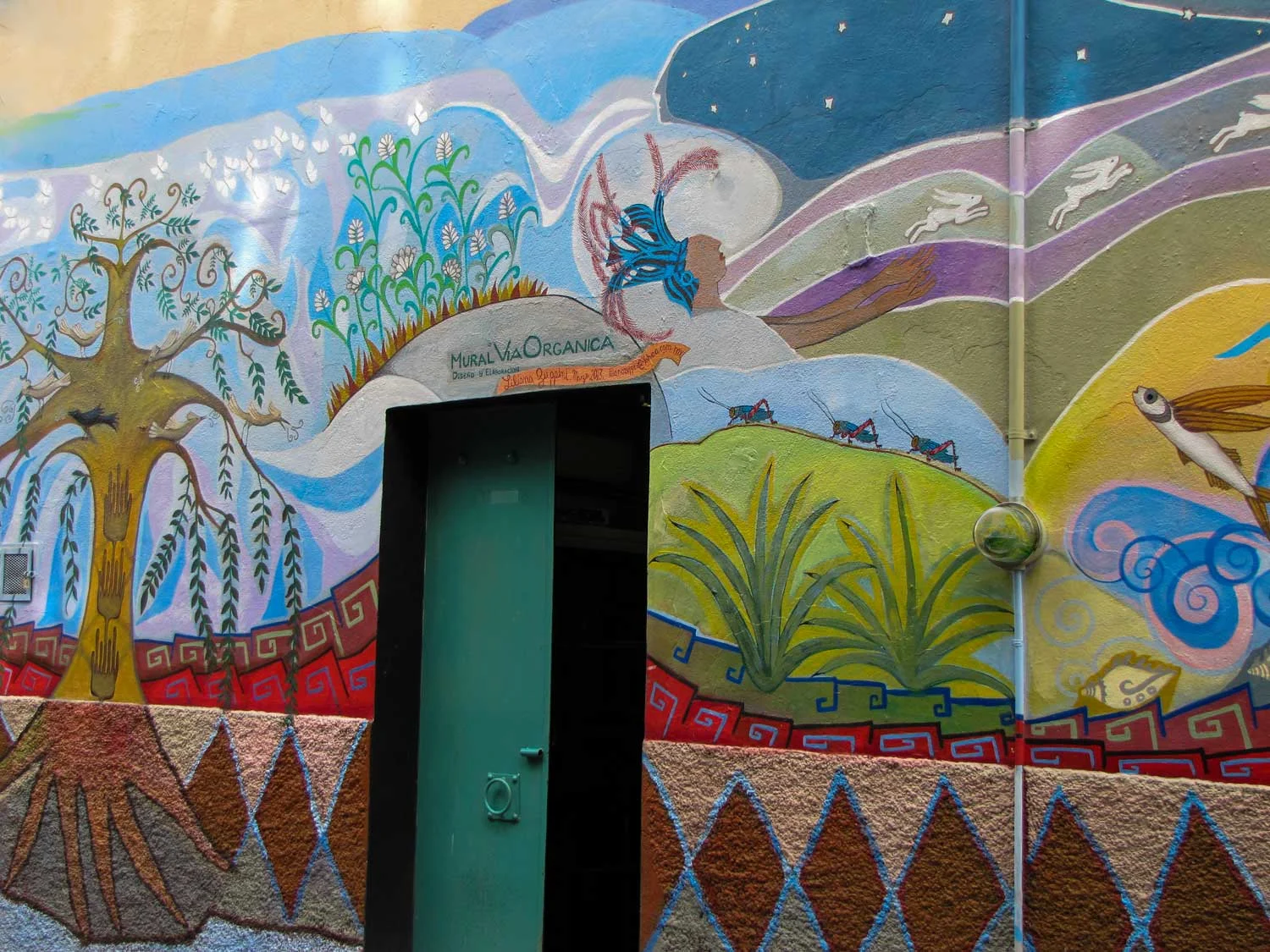 Wandering about the Colonia de Guadelupe in San Miguel de Allende, Mexico, a couple of years ago, I couldn’t help noticing its profusion of enchanting and sophisticated street art. Scattered about the neighborhood’s narrow, twisted cobblestoned streets were extensive painted walls in all colors of the rainbow. These cement or brick walls, some previously dilapidated, were being “visited” by hummingbirds, parrots, butterflies, ducks, flowers, flying fish, insects, bulls, teenagers, you name it. The variety and clear "signature" of the artists were impressive. Thus, while one wall featured an Aztec priest and stalks of Mexico's iconic corn, another featured a 21st century adolescent checking out his cellphone.