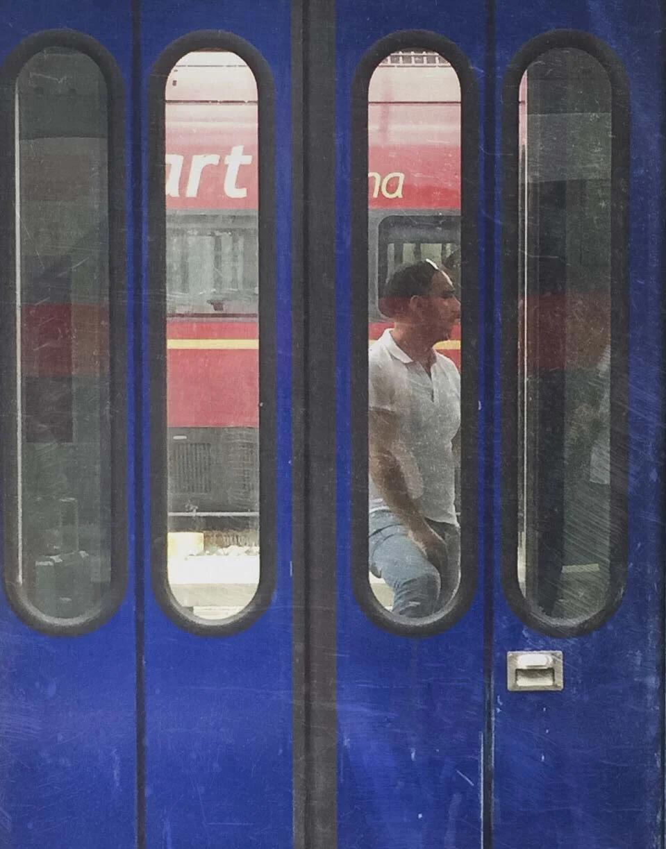 Back at the station a solitary man is simply standing and waiting on a platform like ourselves. I captured him through the bright blue doors of stationary train while, just beyond, a red train was suddenly approaching. This is where I experienced an abiding sense of sharing even though platforms and trains separated us. Together we were waiting for a certain moment to happen in this desolate, lonely and transient environment that was the Salerno station. When will our doors open?
