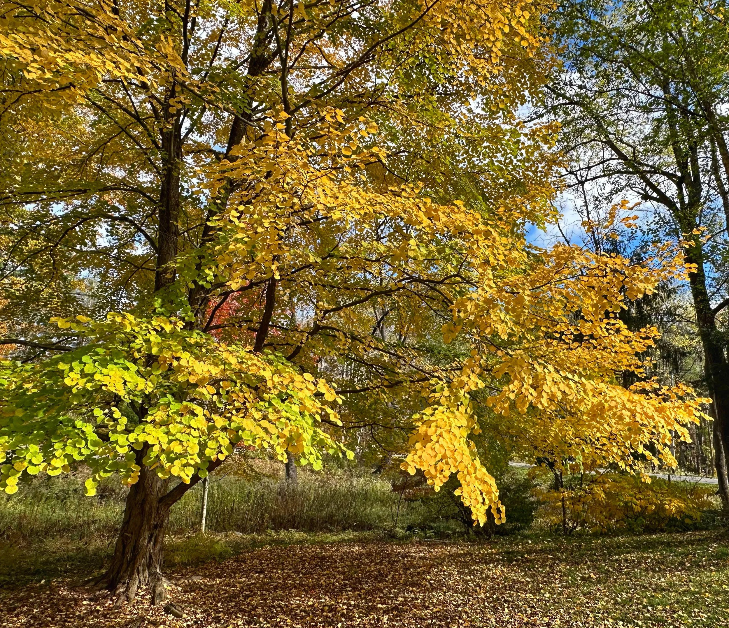 Ambers, rusty browns, lemon yellows, cardinal and burgundy reds, and even shades of eggplant as in copper beeches, make for our own local vertigo of color. A last gasp of breath before dormancy. In six months they will be revealing new life.